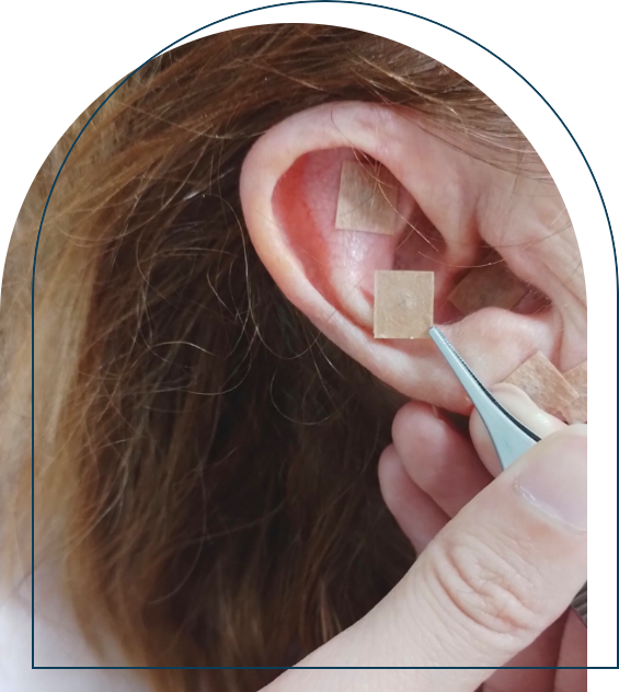 Es una rama de la acupuntura. Consististe en la estimulación de puntos específicos en la oreja. Durante la sesión se pondrán chinchetas, agujas semipermanentes, semillas de mijo, vaccaria o magnéticas según corresponda en los puntos que hemos estimulado previamente.
